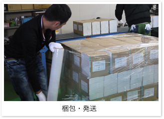 - 書籍を中心に印刷物・出版物全般の区分け・仕分け・包装・梱包・発送までの一貫作業で、確実な仕分け梱包を提供いたします。ポスター・パネル・チラシなど印刷物全般に対応します。納品先別に必要部数の発送も可能です。